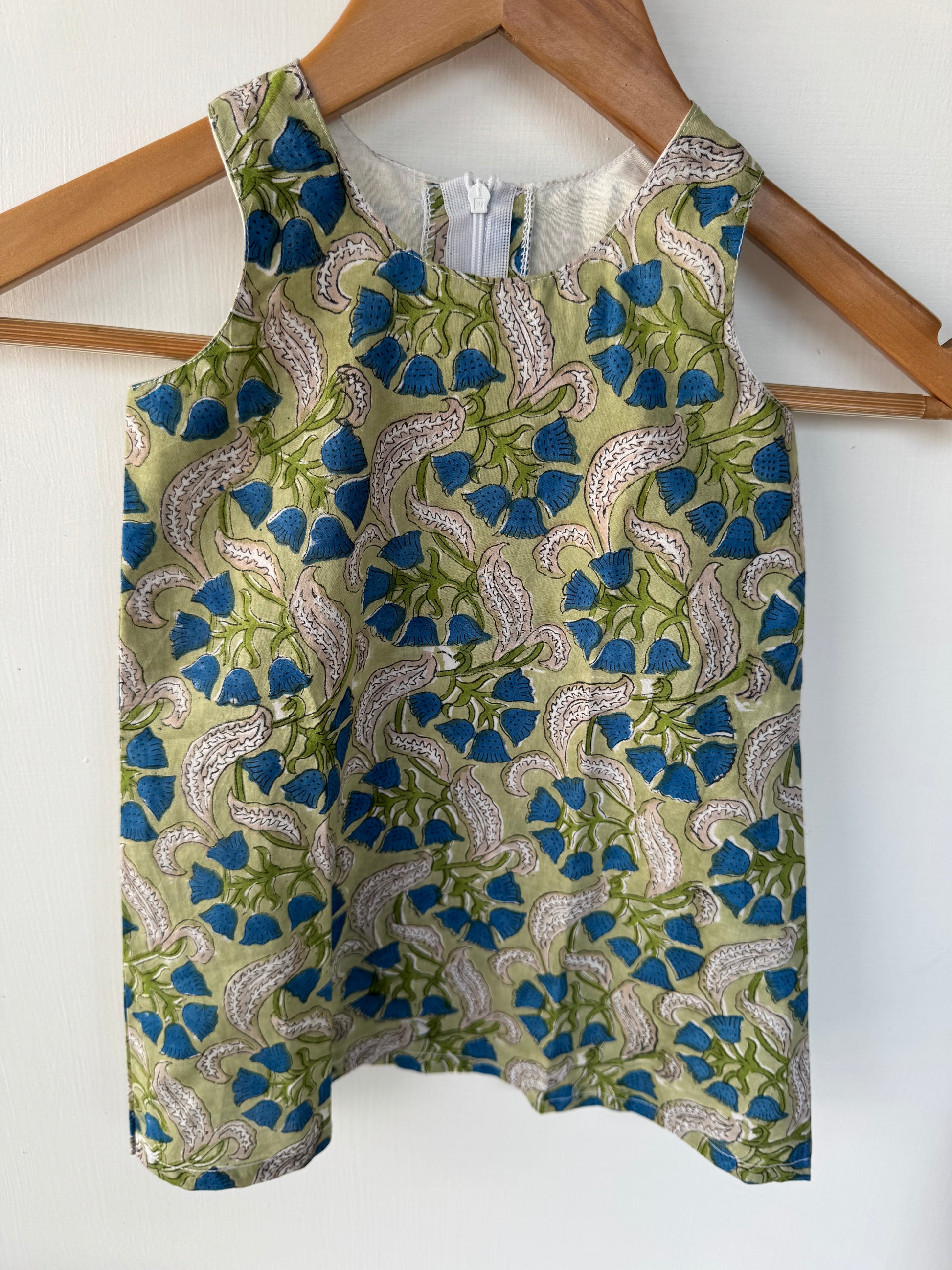 This Girls A-line Handblock Frock combines traditional cotton handblock prints with all-day comfort. Featuring a soft cotton lining up to the yoke and a convenient zip at the back, it ensures ease of wear and a perfect fit. Its breathable fabric makes it suitable for all seasons, offering a stylish yet comfortable option for your child’s everyday wardrobe.